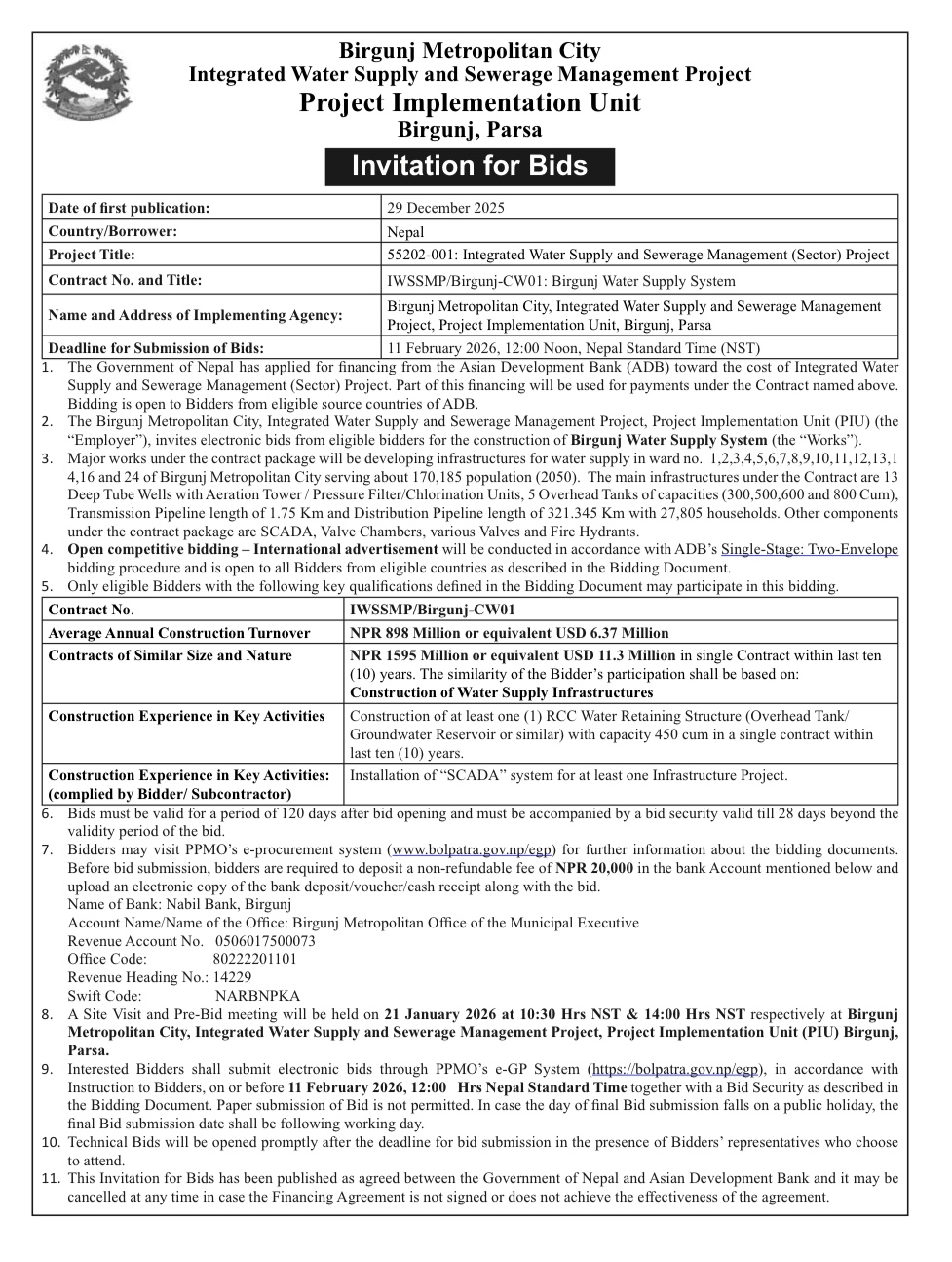• 投标截止:2026年2月11日(尼泊尔标准时间12:00)