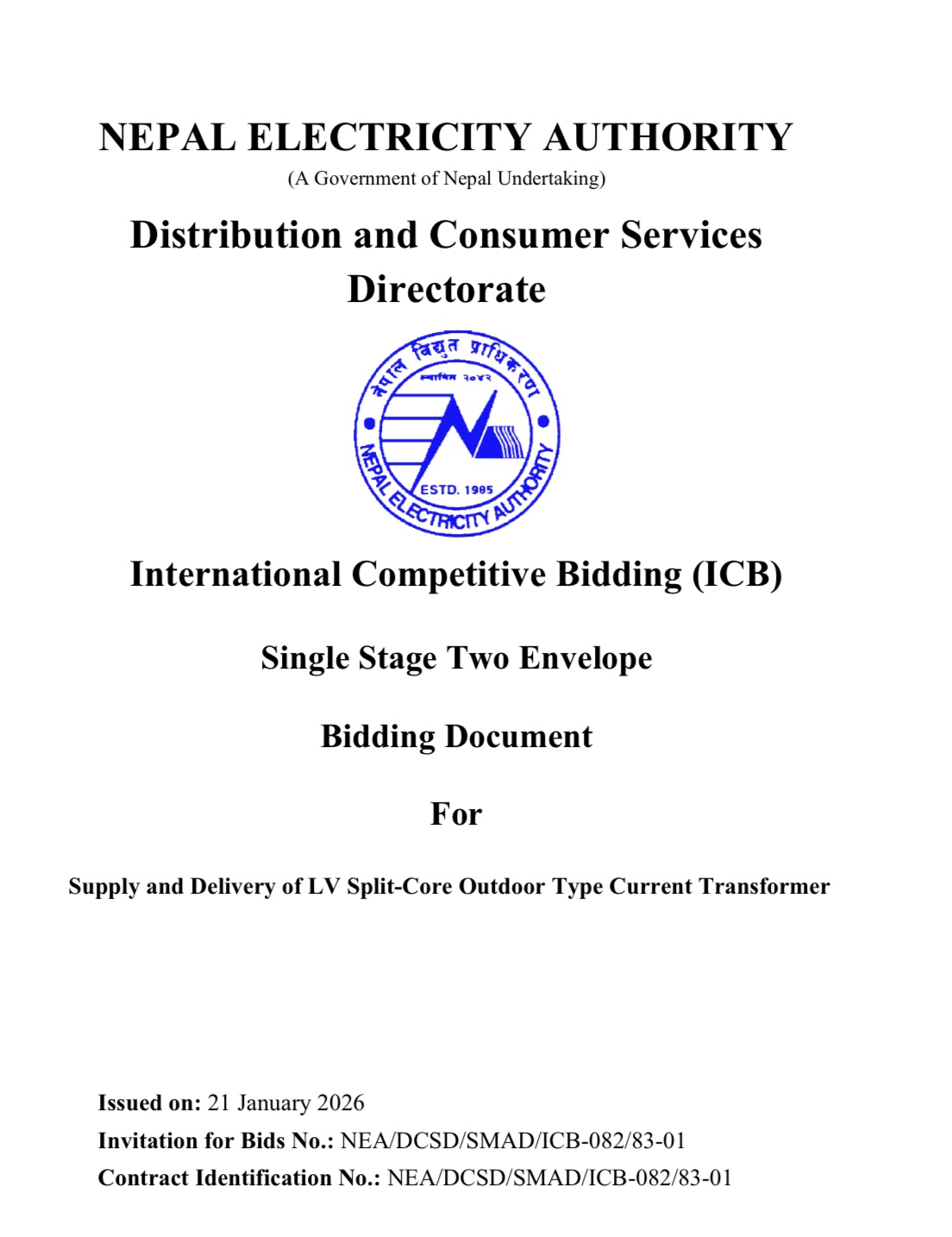 • 采用单阶段双信封(技术标+价格标)电子提交,截止时间:2026年3月9日12:00(尼泊尔时间)。